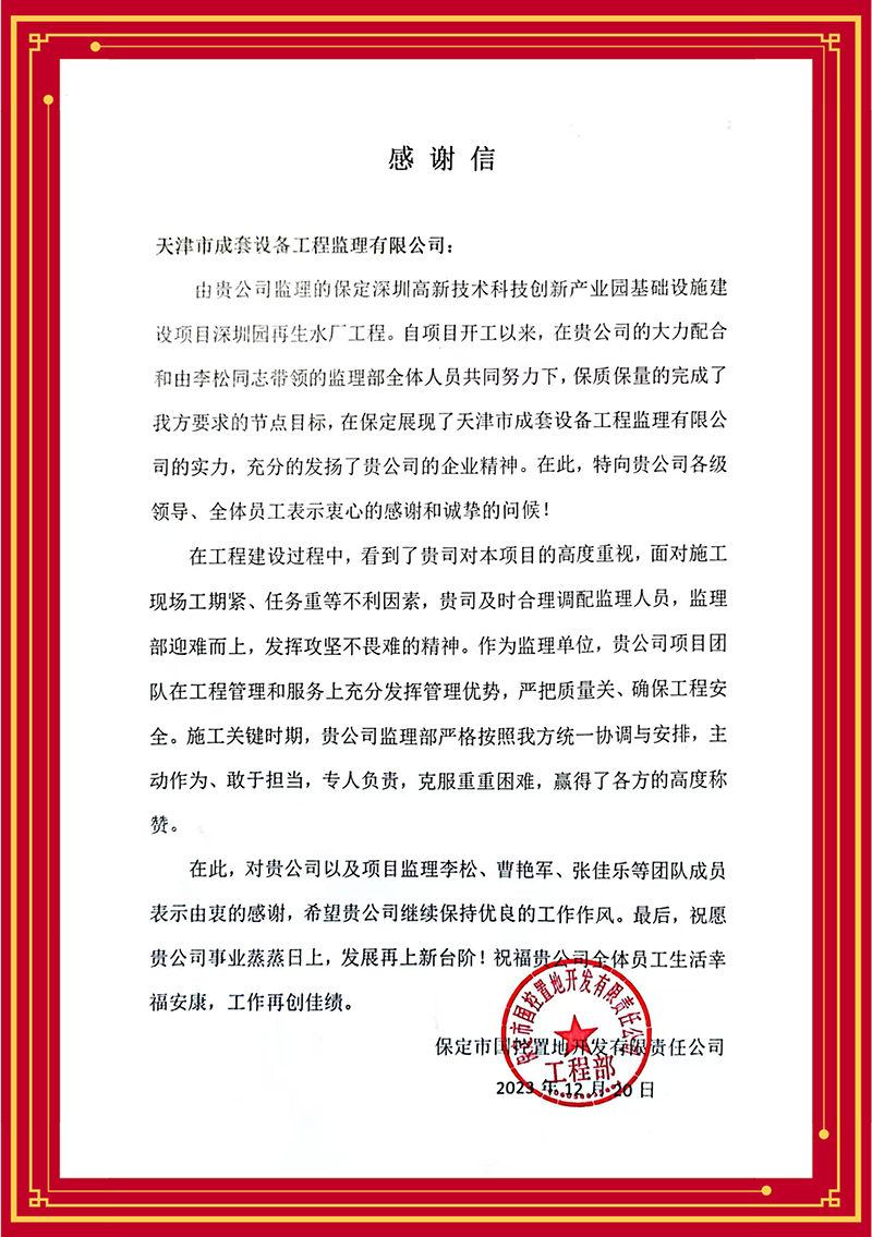 感恩客戶 再接再厲——天津咨詢承擔(dān)工程建設(shè)監(jiān)理項(xiàng)目獲業(yè)主好評(píng)