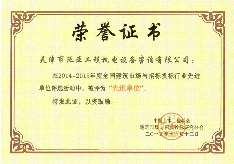 2014-2015年度建筑市場(chǎng)與招投標(biāo)行業(yè)先進(jìn)單位