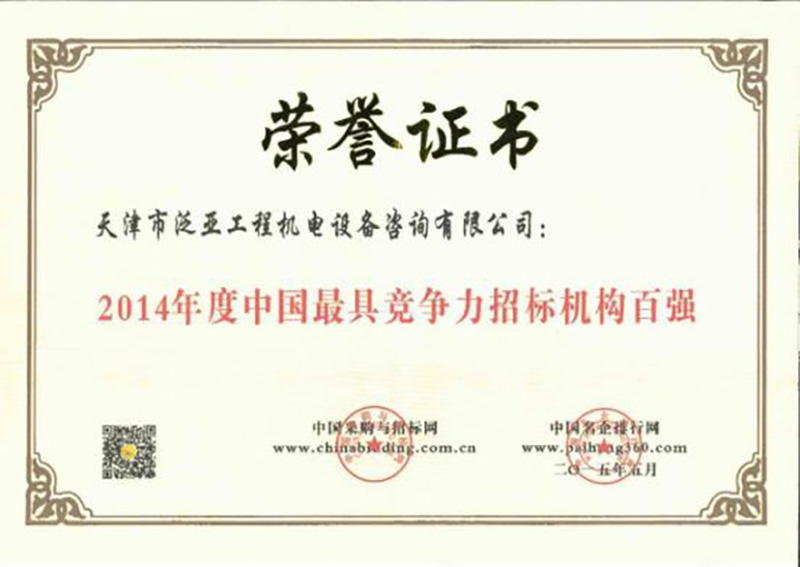 2014年度中國最具競爭力招標(biāo)機構(gòu)百強