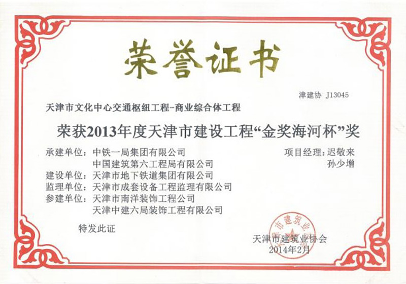 建設(shè)工程金獎海河杯2(2013年)