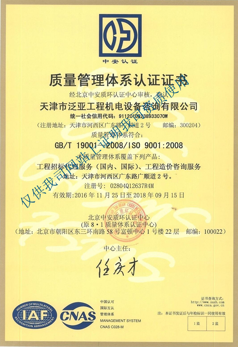 招標(biāo)、造價(jià)質(zhì)量體系認(rèn)證
