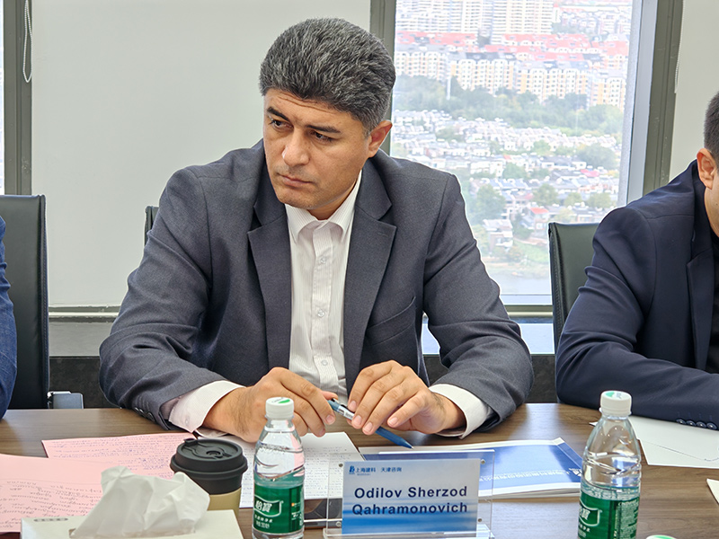 10月15日,烏茲別克斯坦住建部訪華團一行在建設(shè)協(xié)調(diào)局局長Odilov Sherzod Qahramonovich(奧迪洛夫·謝爾佐德·卡哈拉莫諾維奇)帶領(lǐng)下,到上海建科集團天津工程咨詢公司座談交流,集團黨委書記、董事長王吉杰、市場總監(jiān)張強,烏茲別克斯坦中國企業(yè)商會執(zhí)行會長劉羽等相關(guān)人員共同參加會議。