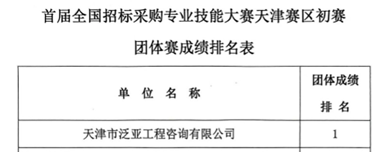 喜 報(bào)——泛亞咨詢斬獲首屆全國招標(biāo)采購專業(yè)技能大賽 天津賽區(qū)團(tuán)體及個(gè)人雙第一