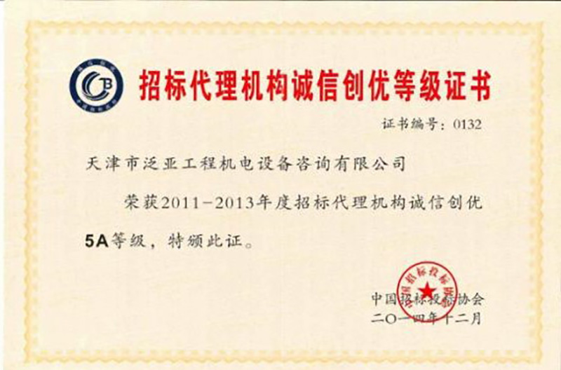 2011-2013年度招標代理誠信創(chuàng)優(yōu)5A級企業(yè)