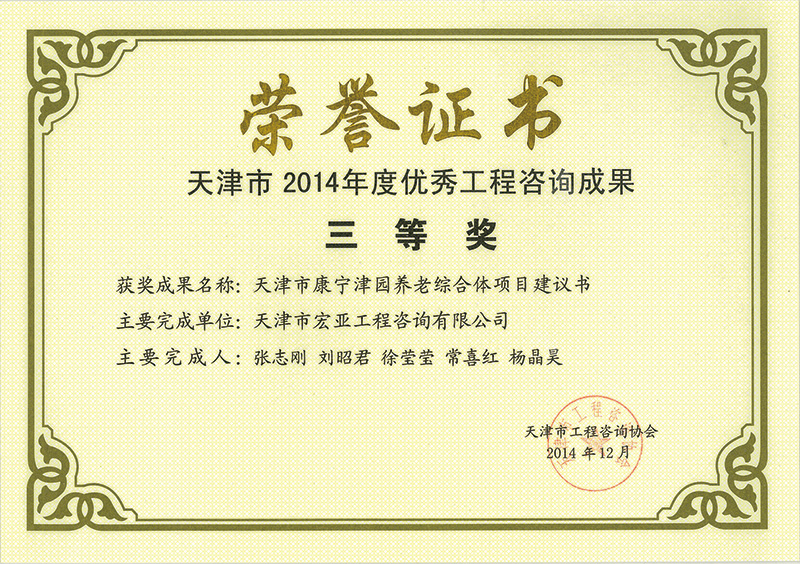 優(yōu)秀咨詢成果三等獎(2014)